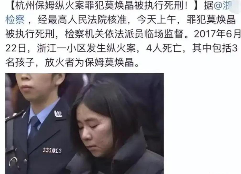 证据确凿、事实清楚,保姆莫焕晶最终被判处死刑,并且已经依法执行。