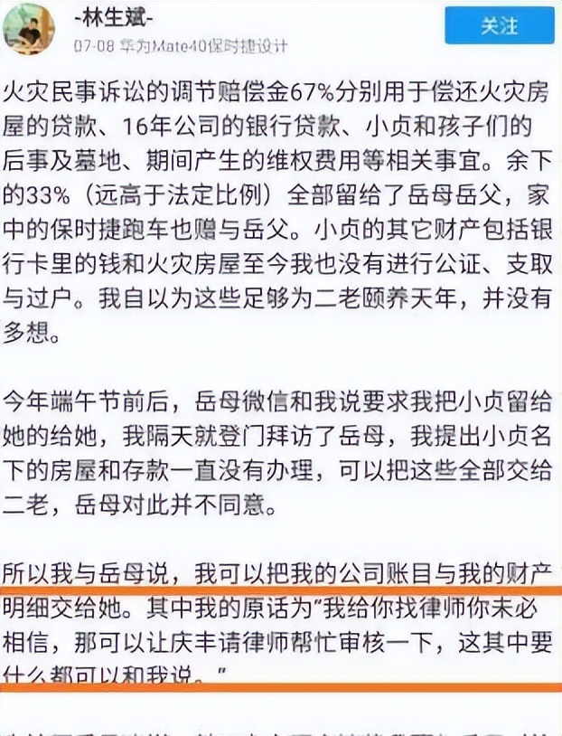 他们曾与林生斌就财产分割问题谈崩,没能拿到属于自己的那一部分。