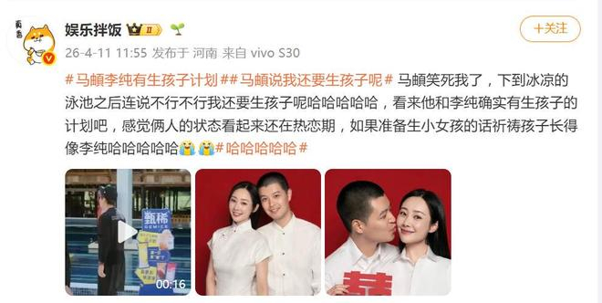 网友普遍认为,这声在极端环境下不受控制喊出的话,恰恰侧面印证了二人内心确有生育意向。再结合两人婚房早已预留儿童房、日常互动甜蜜等细节,更让这份猜测显得有迹可循。对此,舆论几乎一边倒地送上了祝福,并开始提前操心起“孩子的颜值”,纷纷调侃“孩子务必继承李纯的颜值”。