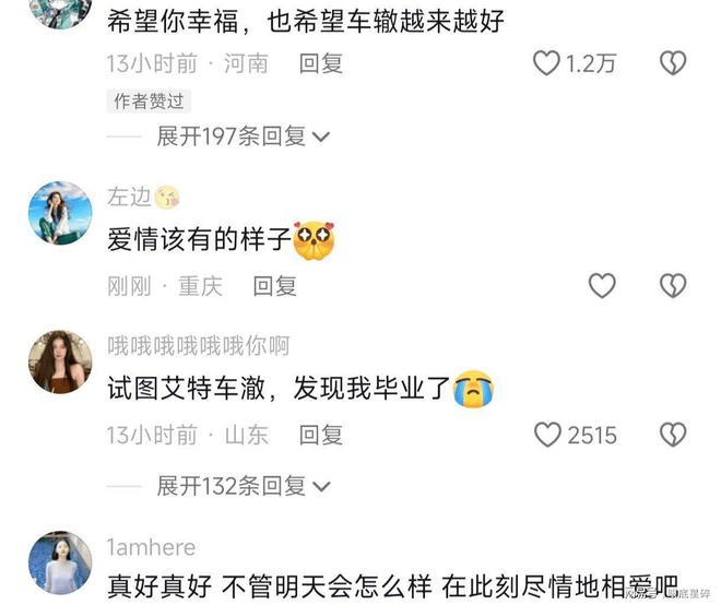 幸福的气息溢出屏幕,粉丝自然排队送祝福。一条“祝你一直这么甜,也祝车澈导演越来越好”的评论被顶上热评第一。更让人意外的是,李嘉格亲手给这条评论点了赞。没有长篇大论的回应,也没有“澄清式”声明,只有一个轻描淡写的赞,却足以让围观网友感慨:“她真的放下了。”