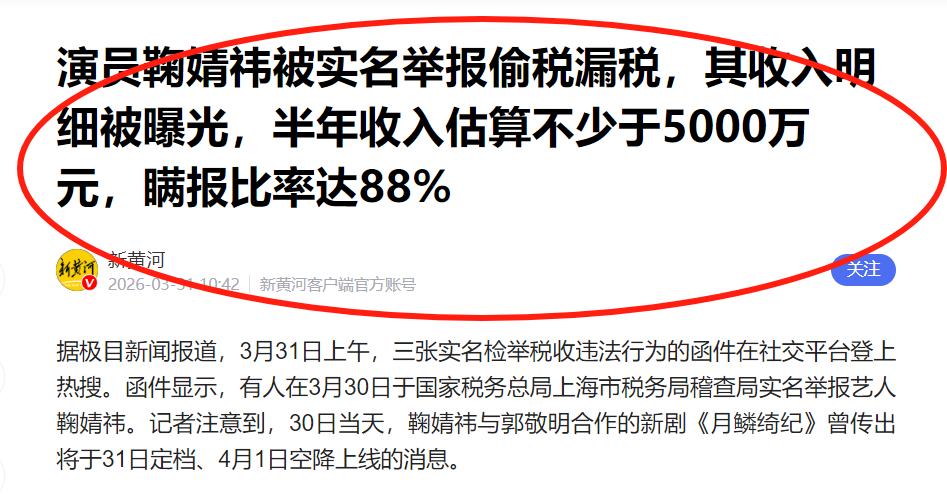 “鞠婧祎在某一时间段内,申报收入仅为1100万元,但其实际收入却超过5000万元,瞒报收入的比例高达85%以上!”