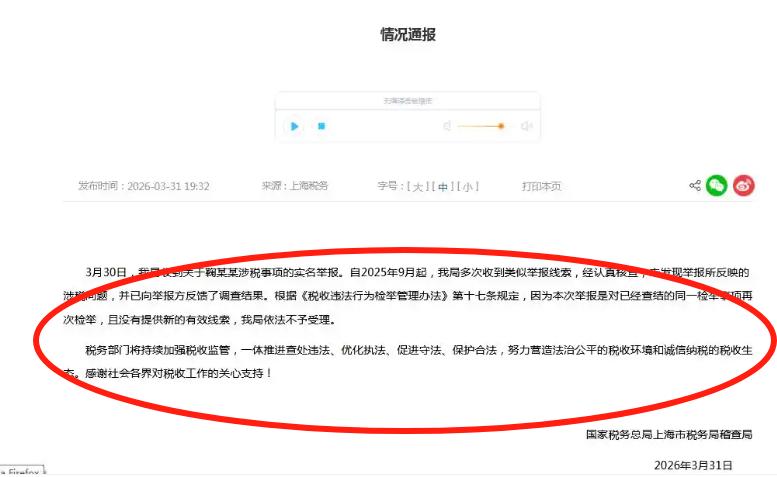 就在双方大战将起的时候,也就是3月31日的晚上,相关税务部门终于出来回应了: