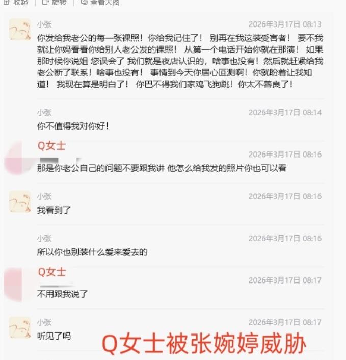 更炸裂的就是,在这件事情爆料之前,其妻子张婉婷已经当面找到第三者,并威胁: