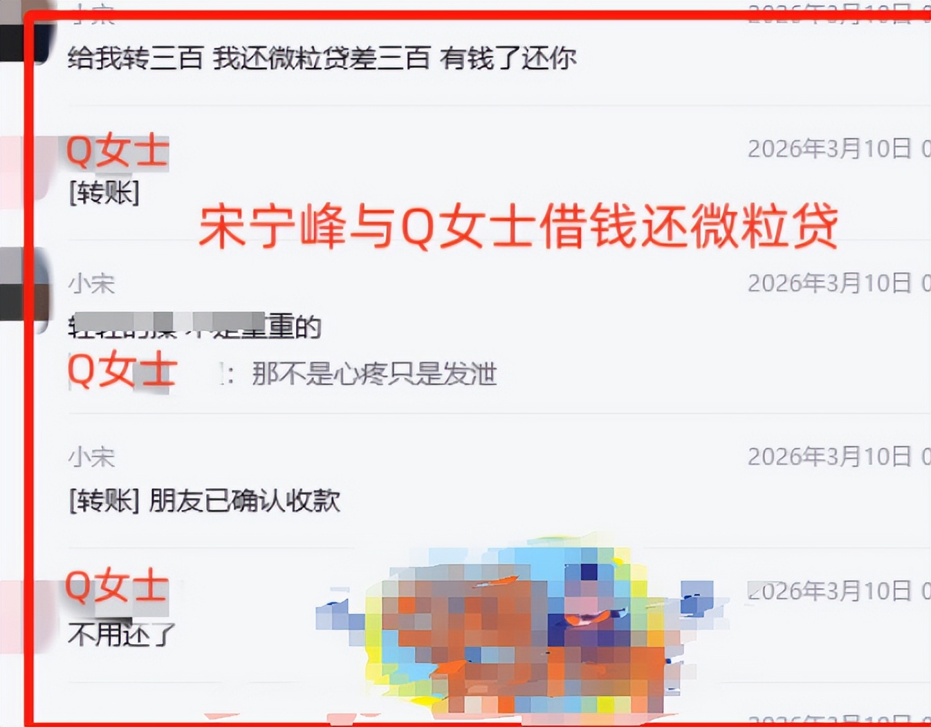 第一张图片上明确写着:“宋宁峰与Q女士借300块钱还微粒贷!”