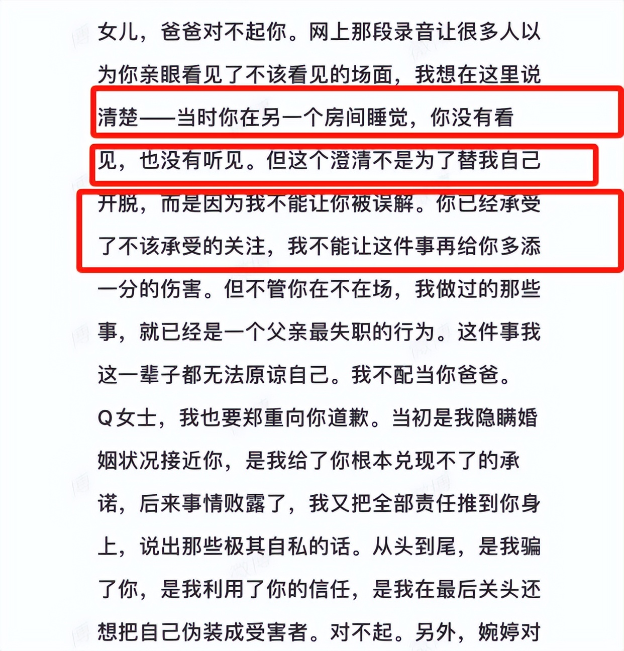 他承认了所有的错误已经网传的事实,并且向所有人道歉,但其中唯一澄清的一点是: