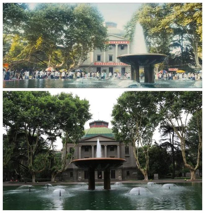《致青春》剧照(上)&东南大学涌泉池(下)