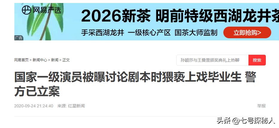 网易新闻:国家一级演员被曝讨论剧本时猥亵上戏毕业生 警方已立案