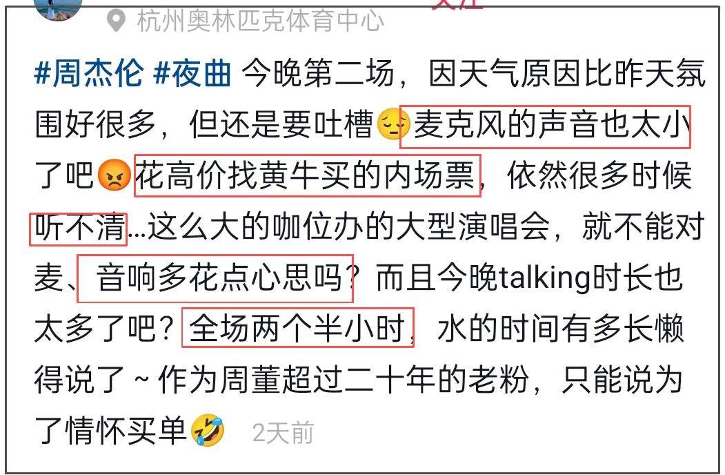 许是吐槽周杰伦话筒声音演唱小的问题太多了,不少粉丝也从情怀中清醒了过来,表示划水是态度问题。