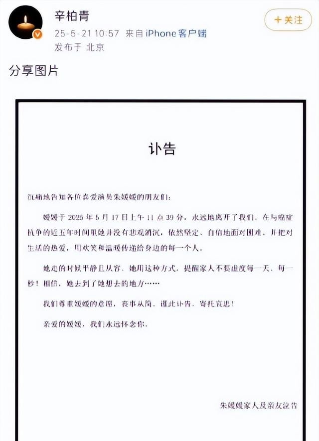 你点开辛柏青的微博看一眼。头像是一根蜡烛,黑白色调,暗沉沉的。从去年五月挂到现在,最后更新停留在发讣告那天,此后再无任何动态。快满一年了,一个字没改过。