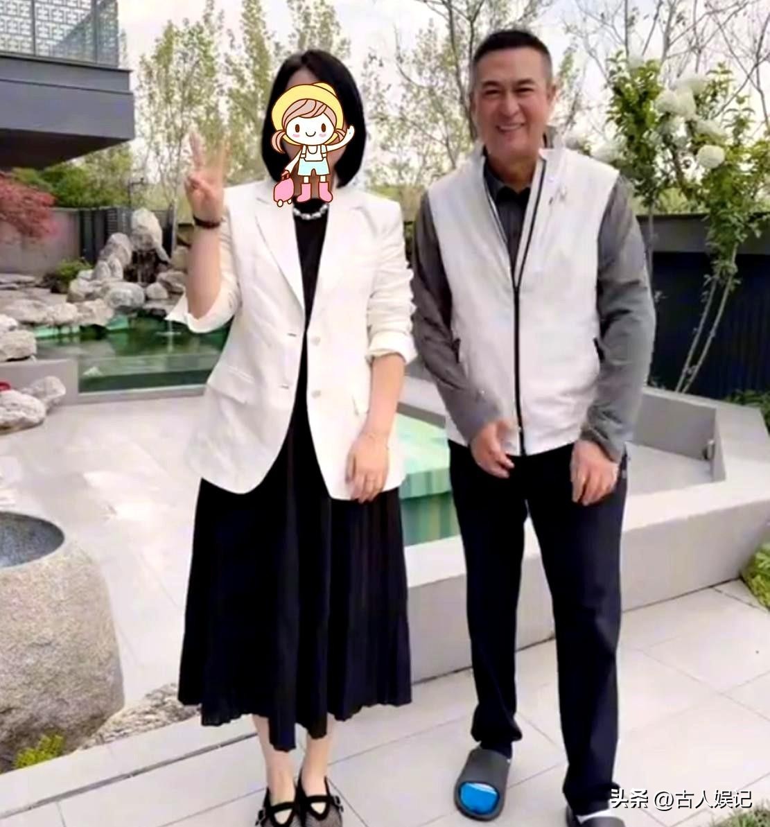 照片里的他脚踩一双毫无明星包袱的居家拖鞋,穿着灰色内搭配白马甲,跟身边的小辈合影时没有任何架子,脸上的笑容温和得就像是邻居家的长辈。