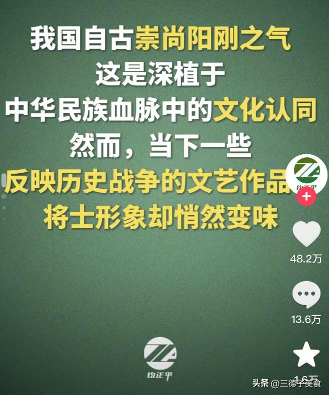 直言古装剧里面涂脂抹粉的将军,是无法承担起塑造阳刚之气的社会责任,言下之意张凌赫饰演的将军过于“阴柔”了。