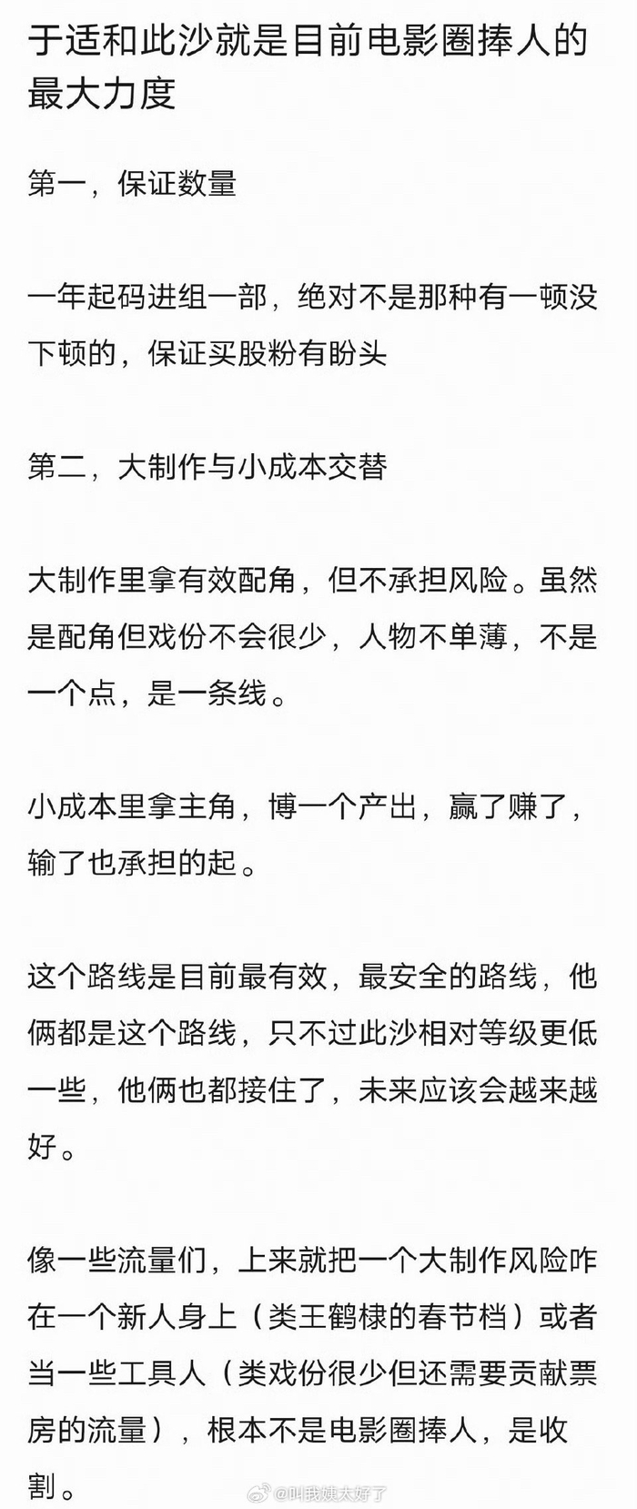 有网友说于适和此沙是目前电影圈捧人的最大力度,大家认同吗?