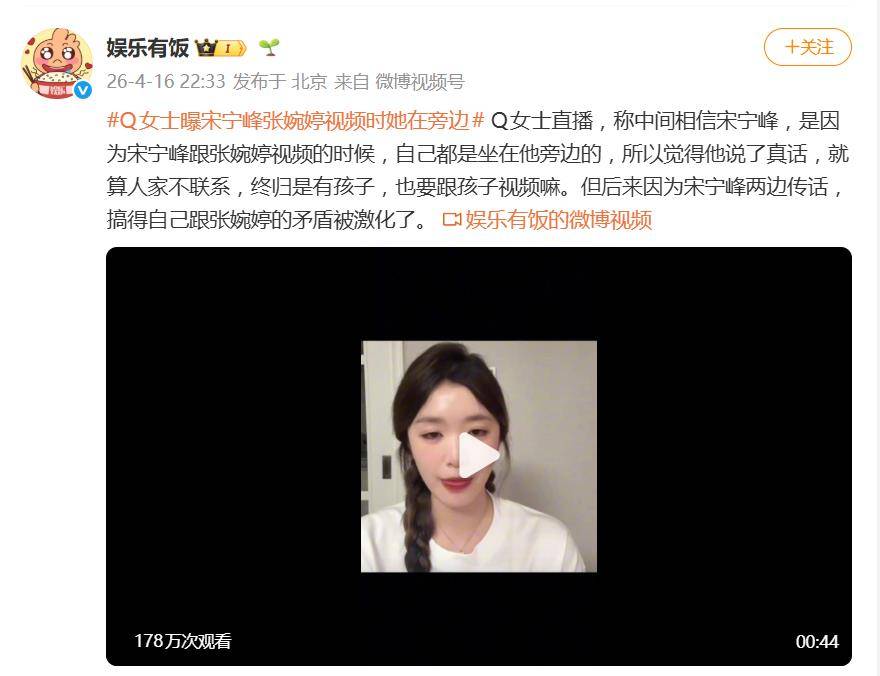 据Q女士在直播中透露,她最初选择相信宋宁峰关于“婚姻名存实亡并协议离婚”的说法,一个至关重要的细节在于:宋宁峰与妻子张婉婷进行视频通话时,她本人常常就坐在旁边,且从未被要求回避。在她看来,如果对方婚姻关系正常,这种私人通话理应主动避嫌,而自己不仅能旁听,甚至还能参与到关于孩子话题的讨论中,这一反常举动无形中强化了宋宁峰说辞的可信度。她表示理解对方即使感情不和,“终归是有孩子,也要跟孩子视频”。