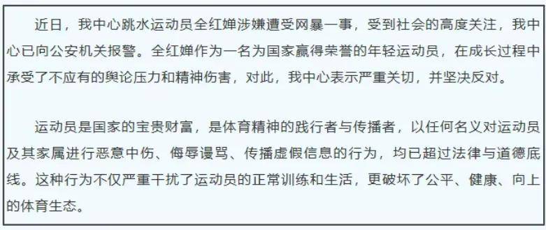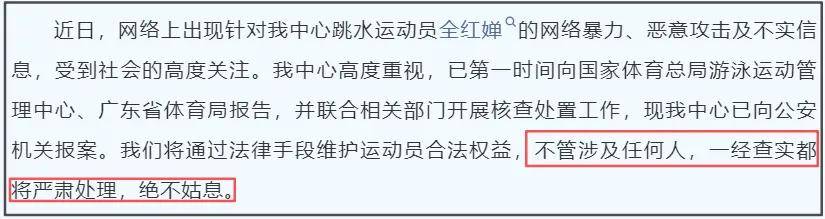 而今,全红婵所属单位发文表示报警,那么网传人员的真实性就需要公安机关调查核实。从全红婵主管单位的发文态度能看出一些差异。