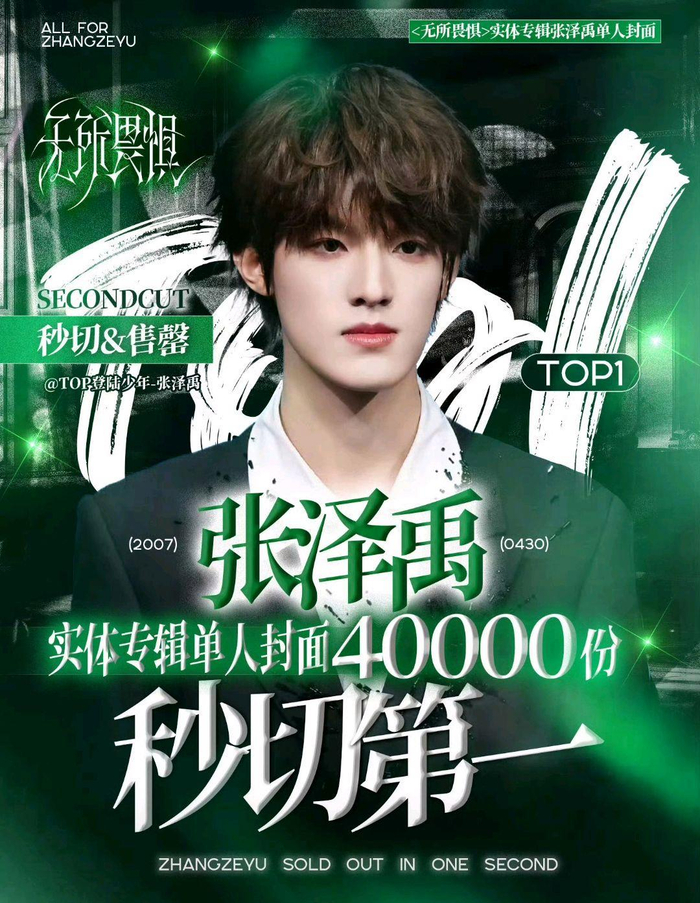 TOP登陆少年(TF家族三代出道团)首张实体专辑《无所畏惧》正式开售,限量单封瞬间秒空,10分钟销售额直接突破5000万,拿下QQ音乐殿堂史诗唱片认证,内娱新生代的购买力,真的吓到全网。