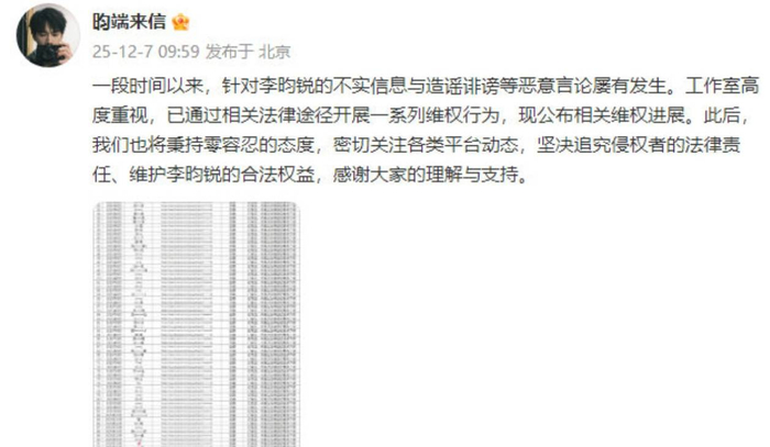 这场维权风暴其实早有预兆。今年6月,李昀锐工作室就曾发布声明,针对持续的网络暴力采取法律手段,当时就承诺会"追查到底"。