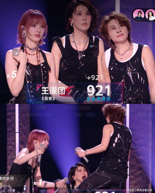 当三个人肩并肩站在舞台中央的时候,那画面真的太有喜感了,王濛气场全开像个掌控全场的机长,曾沛慈温柔细腻像个贴心的空乘,黄灿灿沉稳可靠像个靠谱的地勤,三个人风格差得十万八千里却意外地和谐,整个舞台被她们填得满满当当,难怪有网友当场发弹幕说"这哪里是乘风舞台,分明是深圳T3航站楼啊"。最终这个充满反差萌的舞台以921分的高分,刷新了《乘风2026》当季的舞台票数纪录,成为二公舞台上最亮眼的存在。