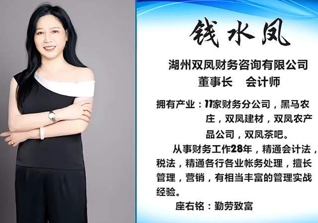据了解,钱水凤是湖州的一位成功女士,名下有11家财务分公司,另外还有建材、农庄、农产品、茶吧等项目,可以说,她的人生达到了完美,但婚姻生活并不是很幸福,这也是为什么开头有那番感慨的原因。