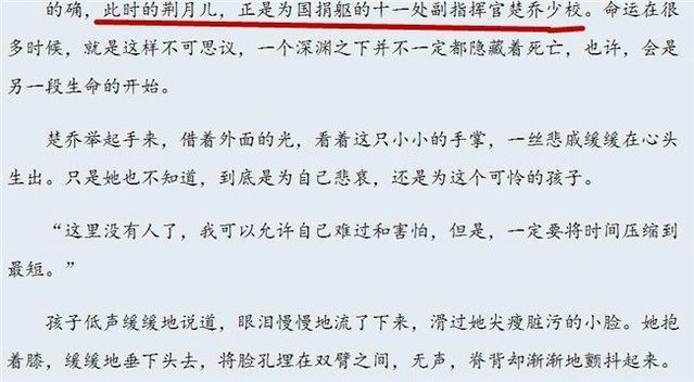 原小说中楚乔本是十一处副指挥官楚乔少校,因为飞机爆炸,灵魂穿越到七岁的小女奴荆月儿身上。