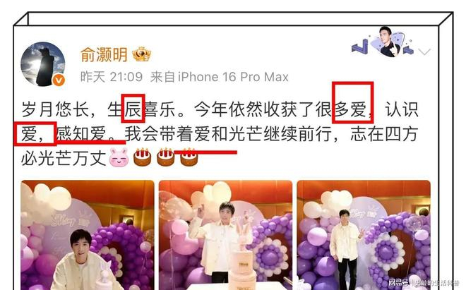 而俞灏明的生日文案里面又是有“辰”,更是有4个爱!这狗粮撒的不能再明显了!