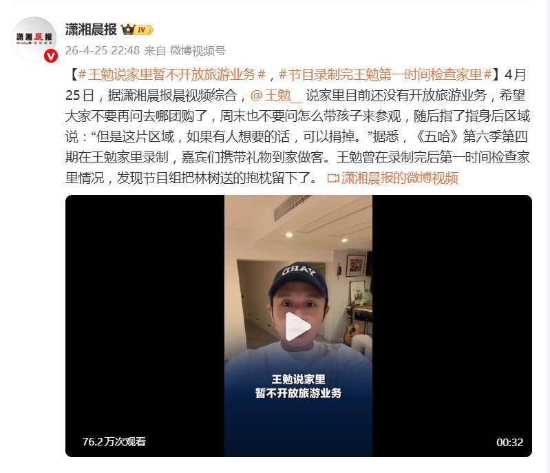 据4月25日报道,王勉本人对此事做出了回应。面对这突如其来的“旅游热度”,他依旧保持了一贯的脱口秀式幽默,直接表态:“家里目前还没有开放旅游业务。”一句话,既化解了隐私被围观的尴尬,又精准地抛出了一个梗,让不少网友直呼“这很王勉”。