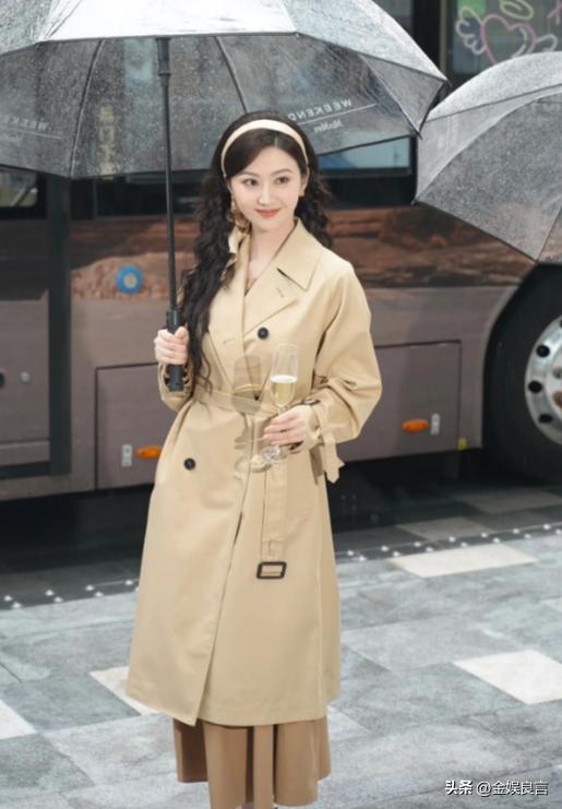 她当天穿了一件卡其色长风衣,版型宽松,刚好遮住身上的肉肉,却一点不显臃肿,反而衬得她气场更足。
