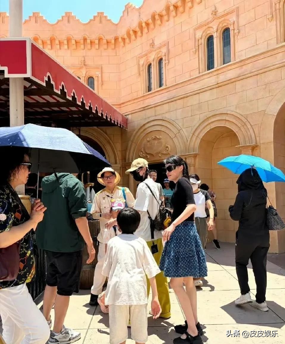 并且他们两个人都没有那么浮夸的出行,比如说带一些随行人员,就好比于助理还有保镖的人,他们一家三口就是平平淡淡的,像普通人一样出现在这个游乐场里边,并且身上的穿搭也都是很普通的样子。