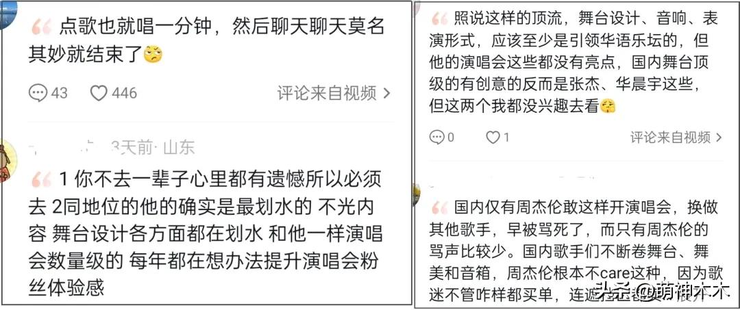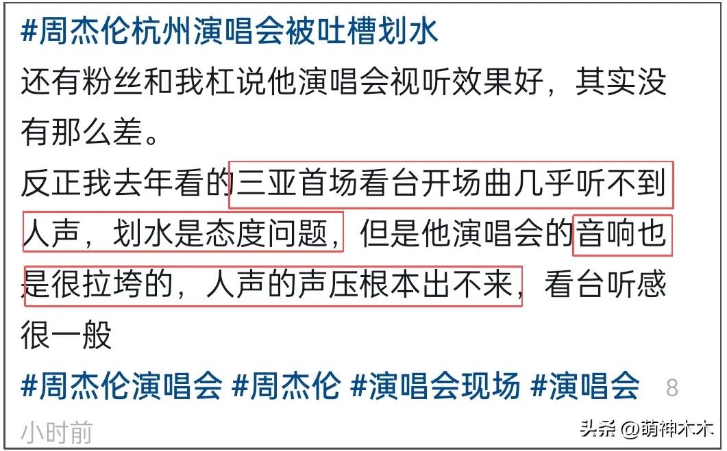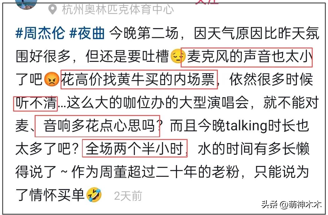 许是吐槽周杰伦话筒声音演唱小的问题太多了,不少粉丝也从情怀中清醒了过来,表示划水是态度问题。