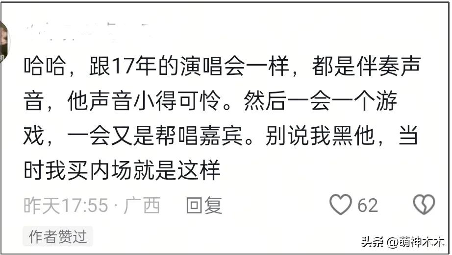作品确实是一个人的底气,但是歌手如果不想要唱现场,那不开演唱会就好了,不能既要又要,长此以往,砸得是自己的口碑。最后,想要去看的人就降低预期,可能还会比较好接受。