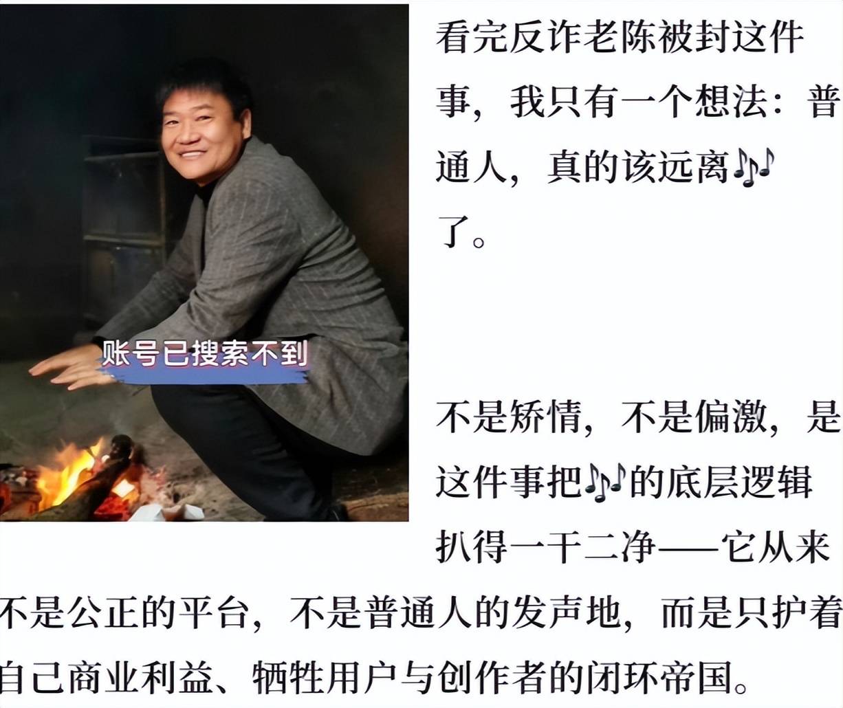 反诈老陈被平台封的事情,大家都知道了,很多人都觉得他160万的大网红,封就封了吧,钱也赚够了,可以吃喝玩乐一辈子了,但事实真是如此吗