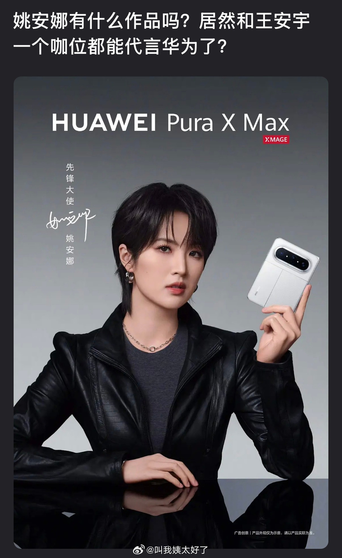 有网友问姚安娜有什么作品吗?居然和王安宇一个咖位都能代言华为了?