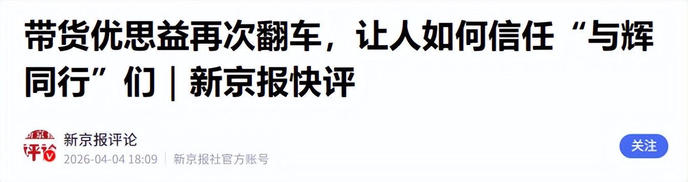 新京报评论2026-04-04《带货优思益再次翻车,让人如何信任“与辉同行”们|新京报快评》