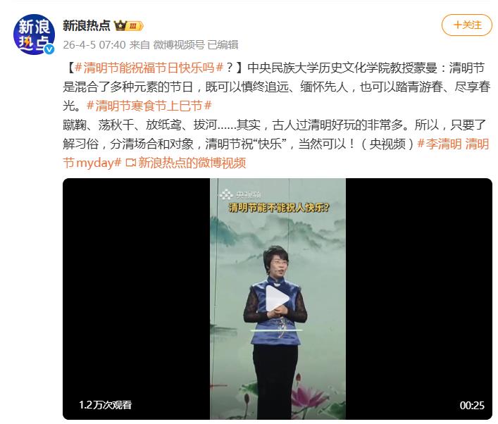 蒙曼教授的观点是,只要了解习俗,分清场合和对象,在清明节祝“快乐”并非绝对禁忌。关键在于语境和理解。显然,李清明将节日完全个人化并称之为“我的节日”的方式,触碰了文化理解错位的雷区,而非单纯一句祝福的问题。