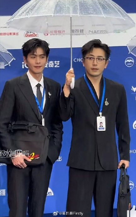 剧组主创新意拉满红毯仪式:张若昀与白客身着西装却搭配醒目工牌,手夹公文包出场,将职场元素转化为视觉符号。张若昀调侃自己饰演“热血笨蛋”刘奔,白客则延续前作角色马杰克的“心态哲学”,两人默契还原职场上下级关系——白客为张若昀撑伞的细节,被网友解读为“职场礼仪教科书”;主持人调侃二人角色地位时,白客幽默回应“您看图说话吧”,引发现场欢笑。道具设计更显巧思:伞与公文包的互动,暗喻职场权力结构,让红毯秒变“办公室现场”。