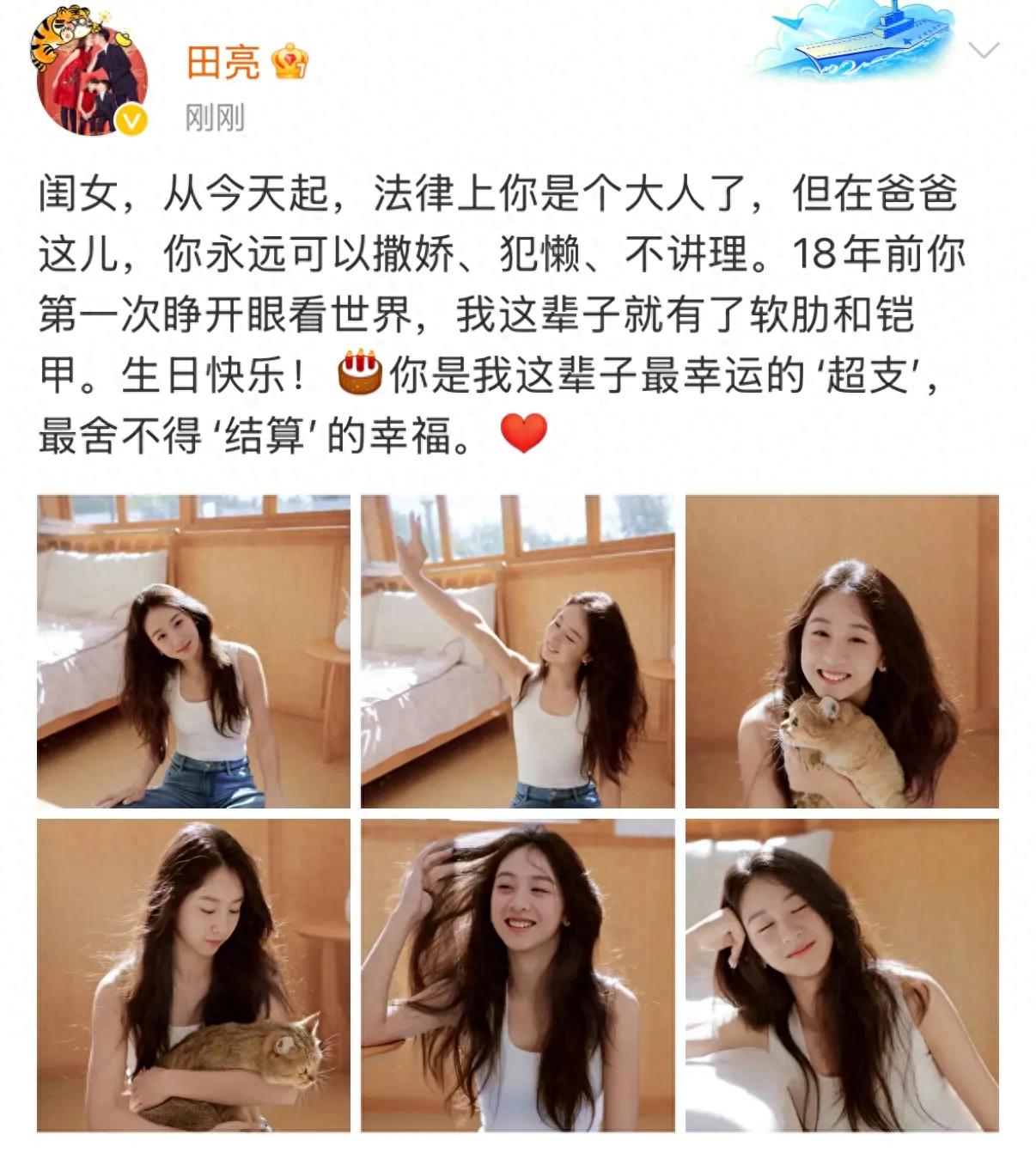 **吃瓜简评:田亮叶一茜晒女儿庆生写真,森蝶18岁瞬间爆发,颜值和身高双双在线!**,网友们都在讨论田亮叶一茜为女儿森蝶庆祝18岁生日,晒出的写真,简直让人看呆了!森蝶从一个顽皮的小姑娘,一下子就长成了亭亭玉立的大美女,真的让人“发自内心”感叹时间过得真快,好家伙,18岁也太突然了吧!,森蝶的这组写真简直是美到不行!无论是白色背心搭配牛仔裤,还是白色连衣裙与牛仔裤的混搭,森蝶都毫无压力地驾驭了每一种造型,她的穿搭风格甜酷又清新,青春活力满满,面对镜头的每一个表情都让人看得出她的真实感和幸福感,尤其是她抱着橘猫出镜的瞬间,满眼都是温柔和宠爱,橘猫的镜头感也太强了吧,简直是“打脸”了。,说到森蝶的美貌,自从她继承了妈妈叶一茜的高颜值之后,五官也越发清秀甜美,她的身材也随着坚持网球训练而变得越来越好,看得出每一分努力都换来了回报,18岁的森蝶,身高、颜值、气质,完全让人看得出“大女优”气息,尤其是她坐在卧室地板、头发随意地扎成卷发,面带灿烂笑容的样子,简直就是元气少女的代名词。,森蝶的生日照片里,她还搭配了粉色生日帽,手里拿着气球,脸上洋溢着幸福的笑容,这样的画面真的让人忍不住为她感到高兴,森蝶的每一张照片都充满了生机和活力,仿佛她真的在向大家展示自己过得多么开心和快乐。,看着森蝶从小到大的成长,真的让人感慨万分,小时候的她虽然活泼可爱,但现在已经完全成熟起来,成了一个能够自信面对镜头、展现出各种风格的优质女生,田亮叶一茜作为母亲,肯定是非常骄傲的吧!森蝶未来的发展也值得期待,尤其是在网球领域,她的努力和天赋都已经非常明显了。,森蝶的18岁生日写真简直是一场视觉盛宴,让人看完之后,忍不住想要大喊“好漂亮啊!”和“好想成为她!”,无论是她的外貌、气质,还是她与橘猫之间的互动,都让人感受到满满的温情和幸福,田亮叶一茜晒出的这组照片,不仅是对森蝶成长的记录,也是对所有妈妈们的一种暖心提醒:孩子真的长得太快了,快得让人心疼。,祝森蝶在未来的道路上走得更远、更稳更坚,实现自己的人生价值!越来越好!惊叹!18岁森蝶一张照片都不要吗?田亮叶一茜晒出女儿庆生写真,秒变网红女儿,满满都是看点!,田亮叶一茜近日为女儿森蝶庆祝18岁生日,果然这对“爸爸女儿”的互动也太过于“甜”了!一组组写真展现了森蝶无与伦比的青春活力和独特风格,令人看得欲罢不能。,这组照片里,森蝶一袭清新白色背心搭配牛仔裤,卷发随意地扎成一个大大的发髻,搭配一双百搭的牛仔鞋,整个人清爽自然又不失青春活力,坐在卧室的地板上,森蝶脸上洋溢着灿烂的笑容,仿佛整个房间都被她的元气填满,尤其是她抱着那只橘猫的镜头,温柔又治愈,瞬间让人感受到满满的宠爱和幸福感。,而在另一组造型中,森蝶选择了甜酷又百搭的风格,身穿白色连衣裙搭配牛仔裤,搭配一顶粉色生日帽,手里还拿着气球,整个人像是被糖果包围了一样甜美,无论是对着蛋糕许愿,还是和橘猫一起玩耍,森蝶的每一个镜头都充满了生日的喜悦和满满的幸福感。,更令人惊叹的是,18岁的森蝶已经亭亭玉立,身材优越,常年坚持网球训练的成果可见一斑,她的五官清秀甜美,眉眼弯弯,继承了妈妈叶一茜的高颜值,简直就是“颜值天花板”!而且她的每一张照片都能看出满满的亲和力和感染力,仿佛所有人都想成为她的朋友。,最让人感动的是,森蝶的小橘猫也在这组照片中得到了充分的关注,可以说,这只橘猫对于森蝶来说就是最好的“伴侣”,每次出镜都能完美契合,镜头感十足,看着这对“父女”和小橘猫的互动,真的让人忍不住为他们感到开心。,18岁的森蝶已经从一个活泼的小姑娘成长为一位优雅大美的女孩,虽然时间飞逝,但看着她每天努力练习网球、追求自己的梦想,真的让人倍感欣慰,田亮叶一茜这对“爸爸女儿”真是又爱又靠,未来可有多耀眼啊!无论是在网球场上还是生活中,森蝶都能散发出独特的光芒,相信她一定能在未来的日子里越来越好!