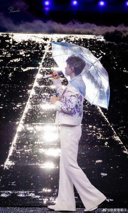 面对“全场仅歌手淋雨”的戏剧性画面,张杰以轻松姿态调侃观众席挥舞的荧光棒为“雨刷器”,巧妙消解狼狈感。这种苦中作乐的即兴互动,既是对粉丝的温柔回应,亦透露出他视自然天气为“独特舞台美学”的创作思维——正如他曾在其他雨中场次所言:“每当下雨都会发生美好的事”。